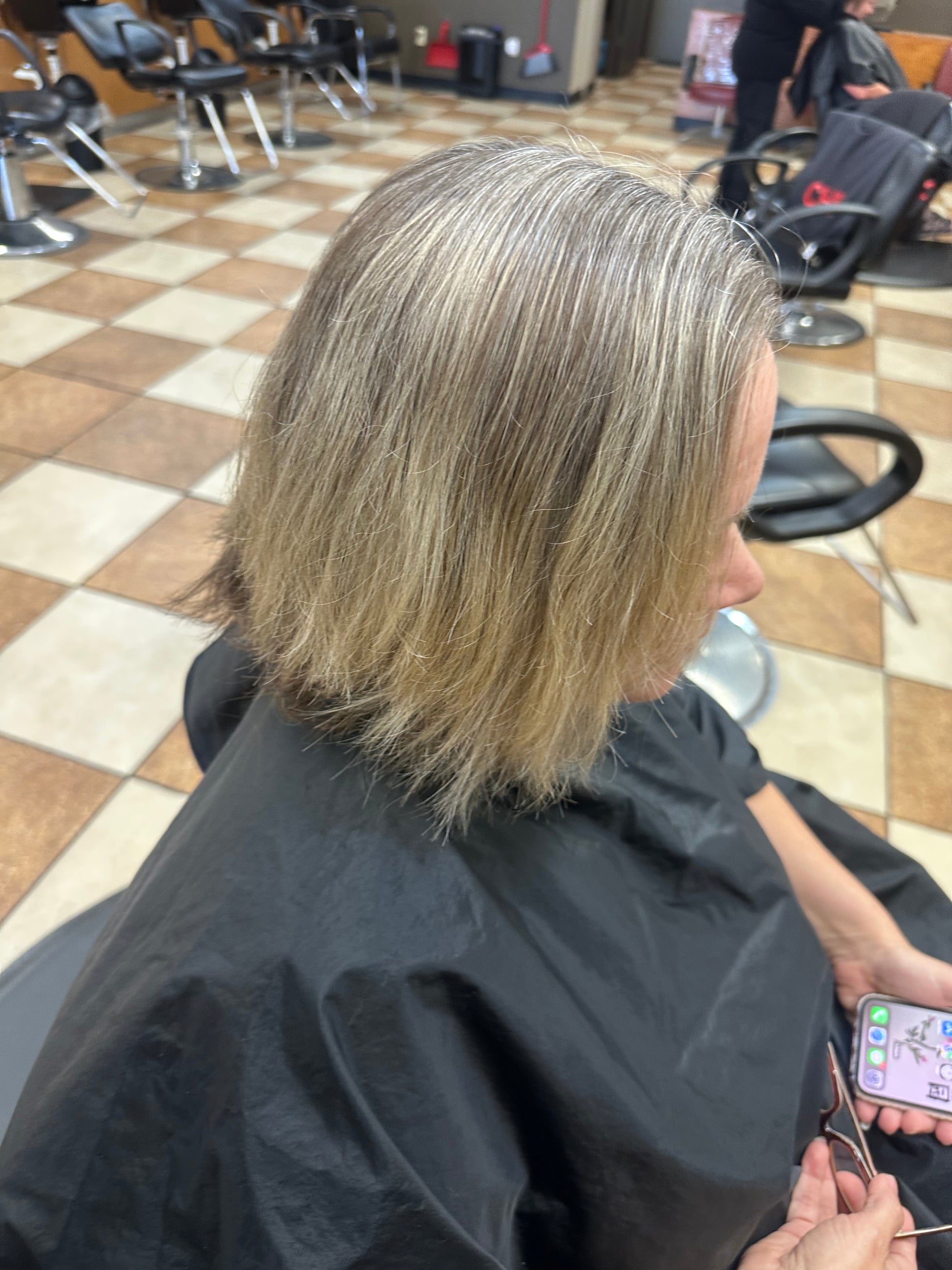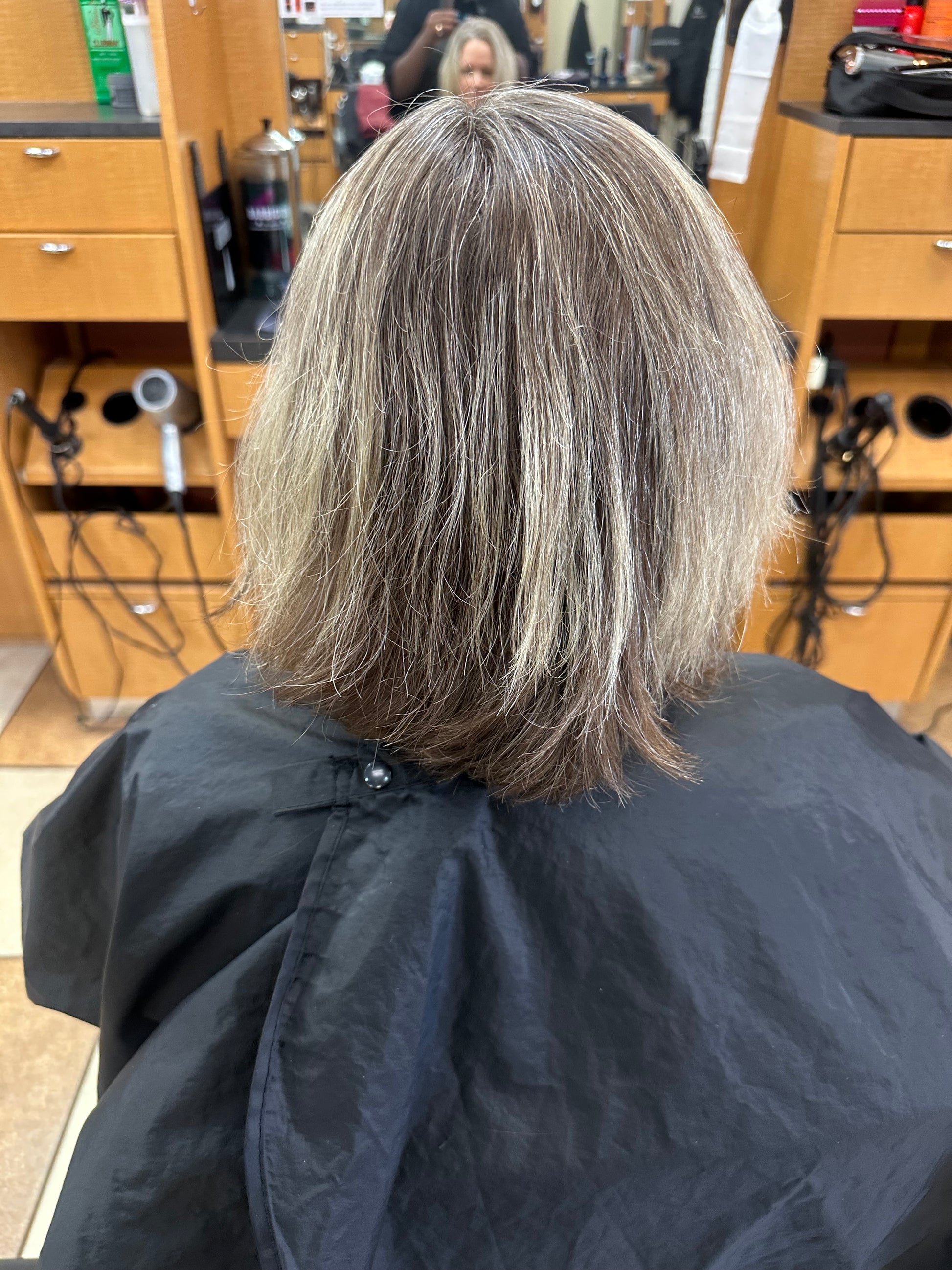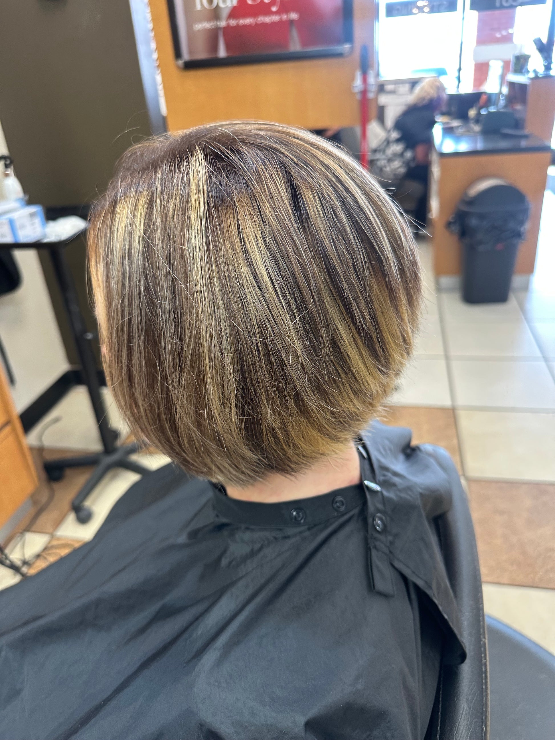 Full head foil highlight application, shampoo, conditioning rinse and blow dry.