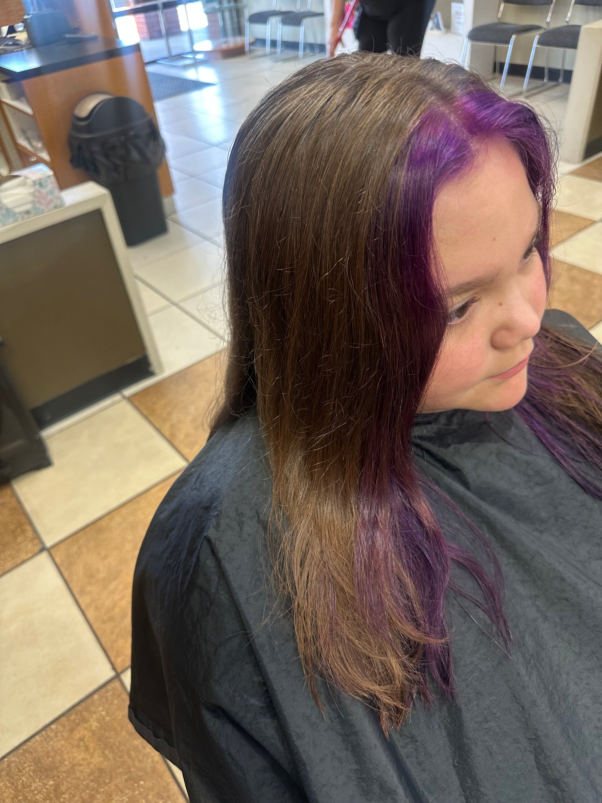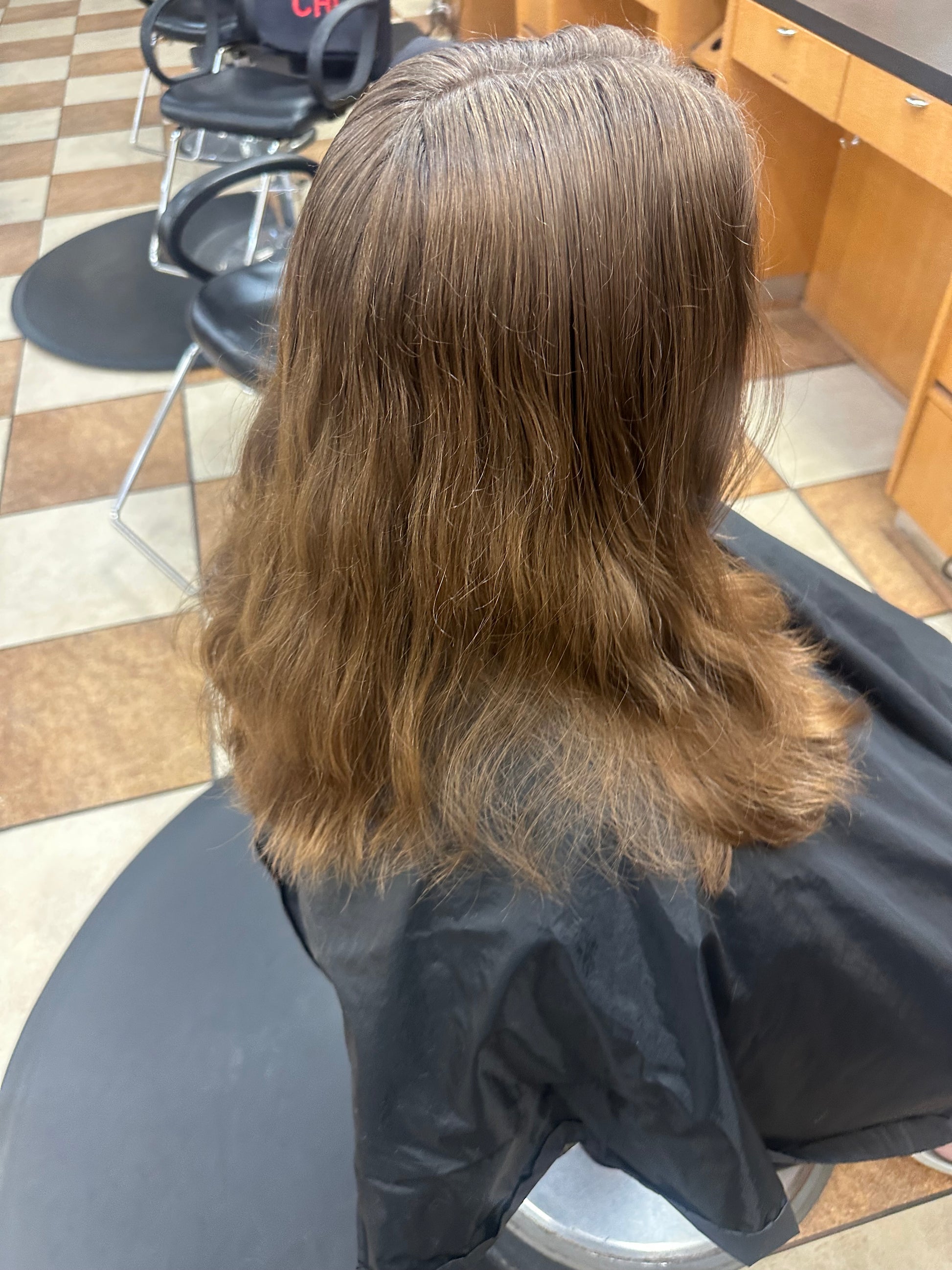 Area bleach applicatio shampoo, conditioning rinse and blow dry.